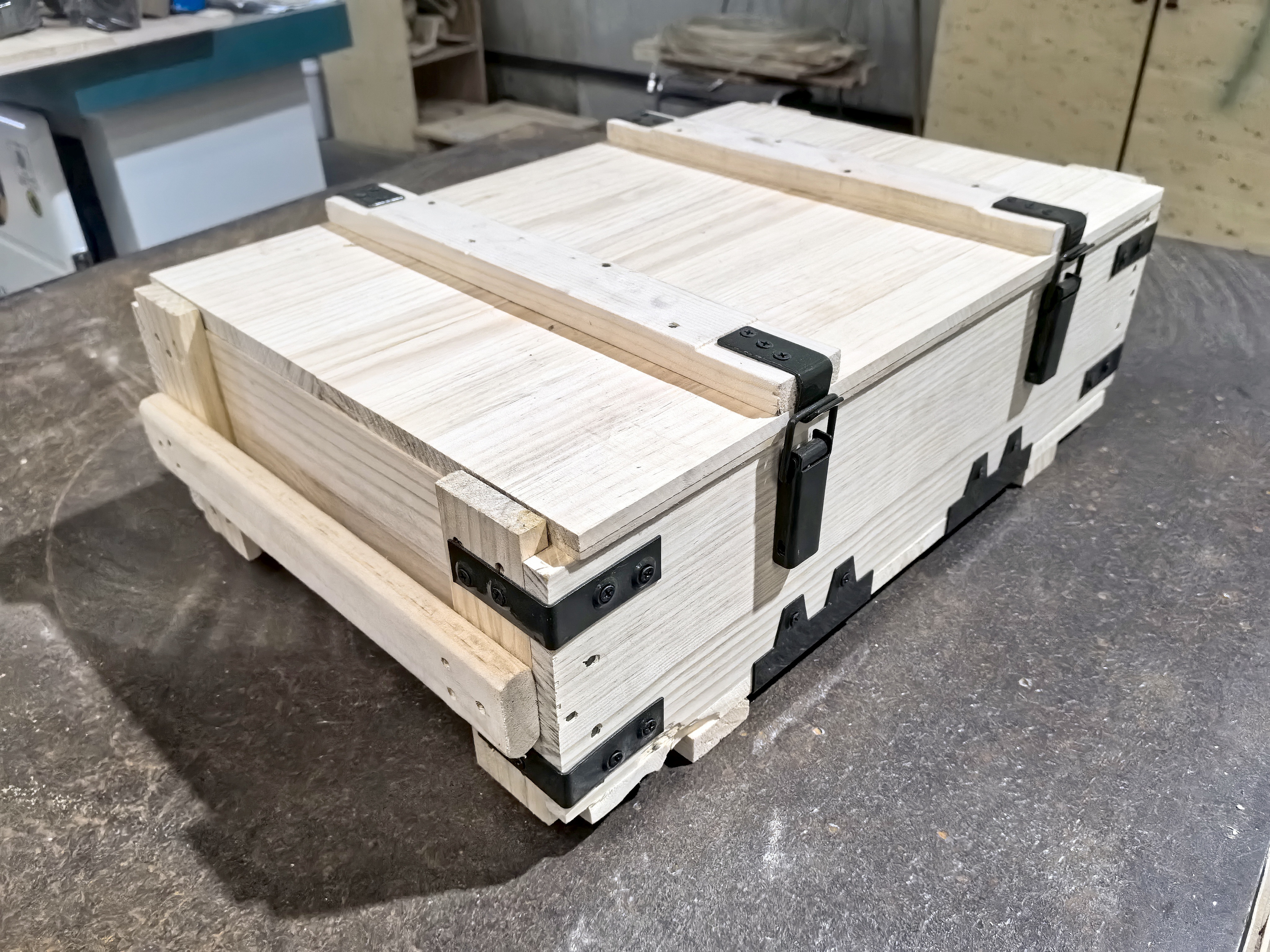 免熏蒸木箱原材料為實(shí)木板或膠合板,其材料是用各類性能好的木制余料通過高溫高壓消毒后模壓成型,因其制作過程使得成品中不會藏有昆蟲及蟲卵,有害生物滅絕,也不會對農(nóng)業(yè)和森林資源產(chǎn)生危害。因此該類木箱用作包裝箱出口時(shí),各國海關(guān)部門不要求做熏蒸處理。下面澎湃包裝的小編來簡單說下關(guān)于免熏蒸木箱的優(yōu)點(diǎn)與特性。